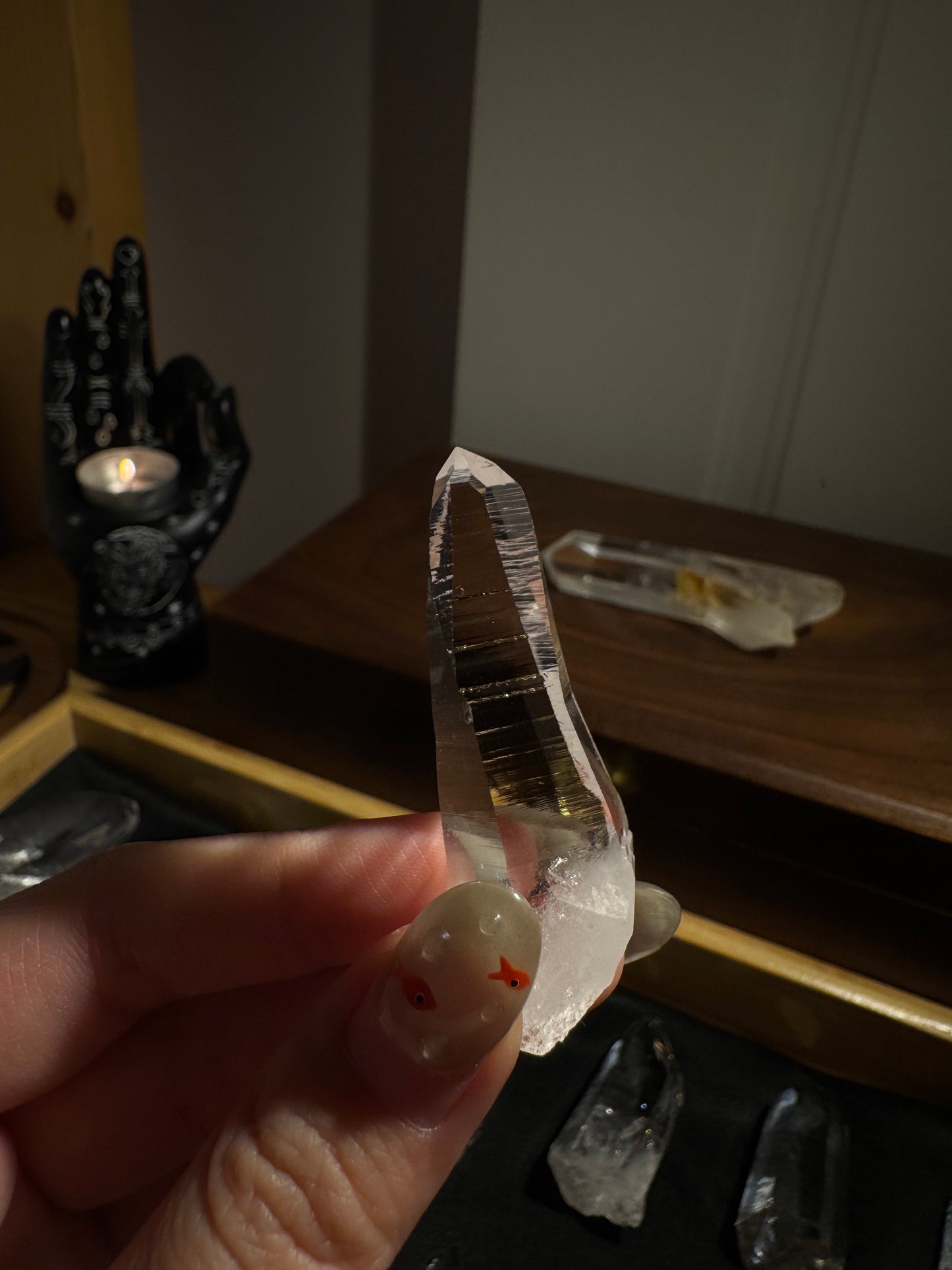 水晶上的橫紋線係阿卡西線